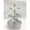 Our Cake Stand is manufactured with 100% Aluminium. It has 3 Round Platters of different size fitted in Aluminium stem & Base. Platters has Lacquered finish and stems has satin nickel plated finish.