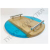 Our Serving Tray is made from Epoxy and Wood combination. It is available in custom colours and custom shapes. Right now it is in rectangular shape and Its available size is 10 x 18 inch.
