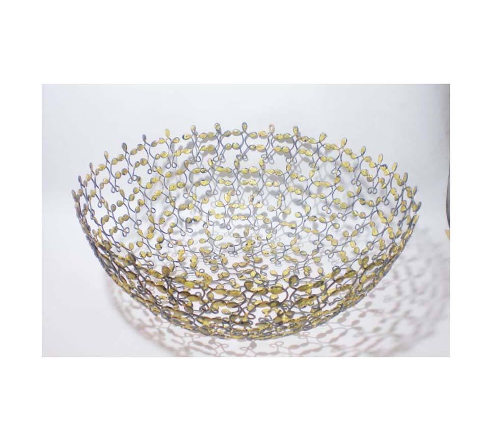 This Fruit Bowl is 100% handmade. It is uniquely manufactured from iron wire with brass inlay &  has fine clear Powder coated finish on its surface.
