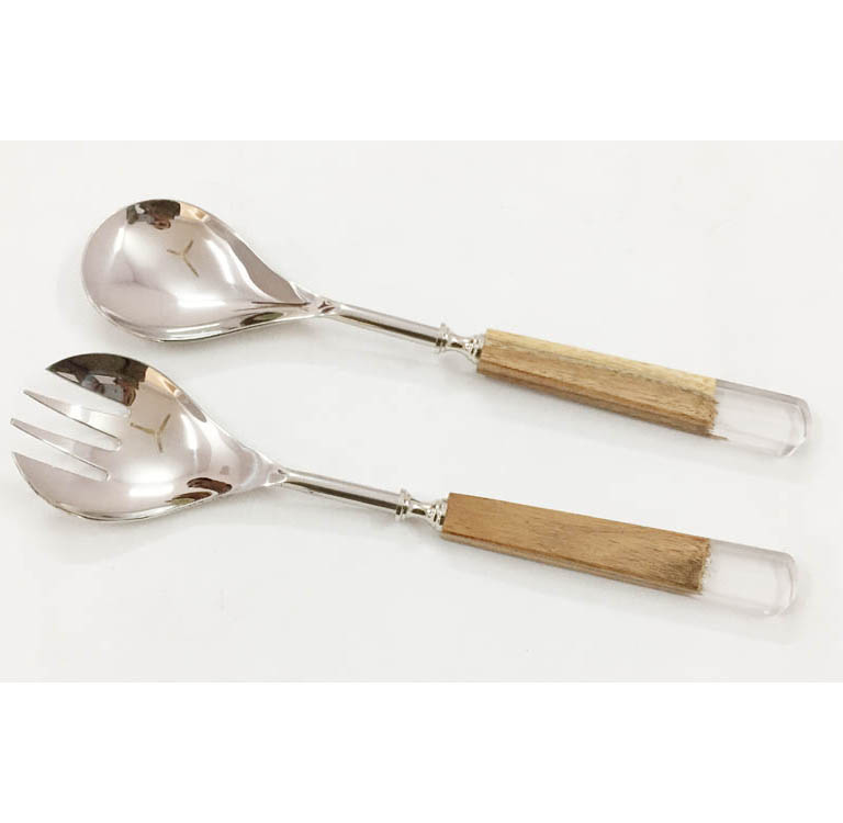 Our Salad Server set is available as a set of 2 pcs. It is manufactured from stainless steel heads with beautifully designed wood & resin combination handles. It has polished finish on its heads.