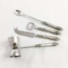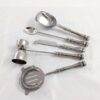 Our Bar Tool set is available as set of 4 pieces. It is made from Stainless steel (14/4 grade) and Aluminium. It has Aluminium sand cast handles with Antique gold plating & enamel inlay. This set includes 4 different pieces: